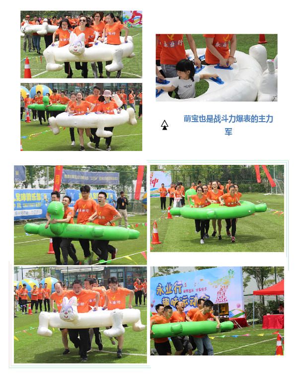 本屆趣味運(yùn)動會共設(shè)置了6個(gè)比賽項(xiàng)目,考驗(yàn)協(xié)作的蛟龍出海、活潑調(diào)皮的龜兔賽跑、驚險(xiǎn)刺激的運(yùn)轉(zhuǎn)乾坤、奮勇沖刺的障礙接力、齊心協(xié)力的旱地龍舟、拼盡全力的拔河比賽……比賽過程挑戰(zhàn)與趣味并存,不僅鍛煉了團(tuán)隊(duì)協(xié)作能力,更是對隊(duì)員們體力、耐力的考驗(yàn)。比賽現(xiàn)場,運(yùn)動健兒的激烈角逐,激動人心;觀賽團(tuán)隊(duì)的吶喊助威,震耳欲聾,大家不顧被烈日曬紅的皮膚、被汗水浸透的衣衫,拼盡全力為團(tuán)隊(duì)榮譽(yù)而戰(zhàn),沉浸在運(yùn)動帶來的激情與快樂中。在沖過終點(diǎn)的瞬間,落后時(shí)的相擁鼓勁,勝利后的擊掌慶祝,作為永業(yè)行人的自豪感與榮譽(yù)感油然而生。一輪輪激烈的角逐后,各組隊(duì)員由比賽之初時(shí)的“矜持”快速發(fā)展成為相擁慶祝的戰(zhàn)友。如果說一場比賽建立不了感情,那么,就來兩場?