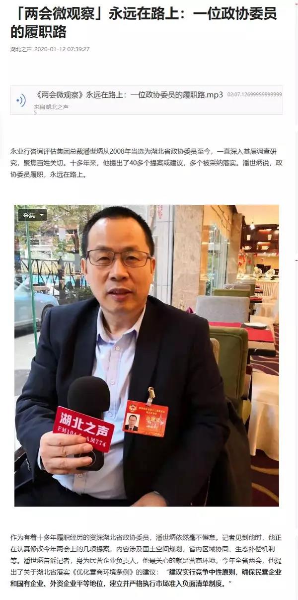 2020年1月11日至15日,政協(xié)湖北省十二屆三次會(huì)議在武漢召開(kāi)。省政協(xié)委員、省房協(xié)會(huì)長(zhǎng)、永業(yè)行董事長(zhǎng)兼總裁潘世炳參加會(huì)議,并向大會(huì)提交了《關(guān)于推進(jìn)湖北省實(shí)施生態(tài)補(bǔ)償?shù)慕ㄗh》《關(guān)于推進(jìn)國(guó)土空間規(guī)劃的幾個(gè)建議》《關(guān)于湖北省落實(shí)<優(yōu)化營(yíng)商環(huán)境條例>的幾點(diǎn)建議》《深化區(qū)域協(xié)同 推動(dòng)鄂黃黃臨空協(xié)同發(fā)展軸建設(shè)的幾點(diǎn)建議》等多份提案,人民網(wǎng)、《中國(guó)經(jīng)營(yíng)報(bào)》、《湖北日?qǐng)?bào)》、湖北廣電、湖北之聲、長(zhǎng)江云等多家媒體從多個(gè)角度對(duì)潘世炳委員的提案進(jìn)行了深度挖掘和報(bào)道。
