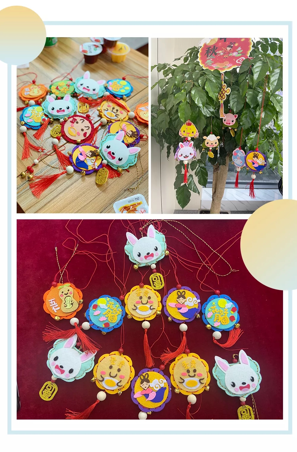 一個(gè)個(gè)小小的香囊承載著大家對(duì)中秋佳節(jié)美好的愿望,為節(jié)日增添了一份濃濃喜氣。