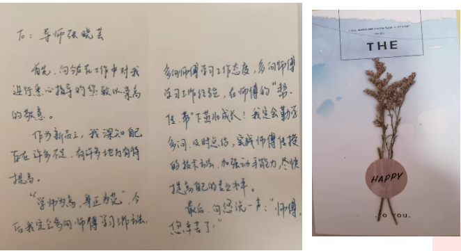 頒獎(jiǎng)儀式結(jié)束后,被培養(yǎng)員工依次向優(yōu)秀導(dǎo)師贈(zèng)與寫有感恩之語(yǔ)的卡片,以感謝導(dǎo)師的辛勤培養(yǎng)和付出,現(xiàn)場(chǎng)氛圍溫馨而感動(dòng)。