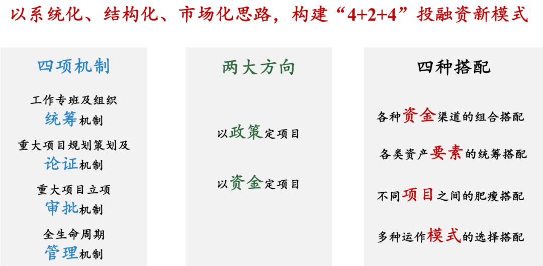 會上,文云波從國內(nèi)宏觀背景出發(fā),介紹了當(dāng)下城市發(fā)展面臨的新形勢、新趨勢和新要求,系統(tǒng)性提出了符合當(dāng)前宏觀形勢、符合江夏區(qū)區(qū)情的投融資方式。本著“系統(tǒng)化、結(jié)構(gòu)化、市場化”的思路,圍繞“四項(xiàng)機(jī)制、兩大方向、四種搭配”,詳細(xì)解讀了“4+2+4”投融資新模式及全生命周期管理實(shí)操要點(diǎn)等重點(diǎn)內(nèi)容。最后,分享了省內(nèi)經(jīng)典案例。