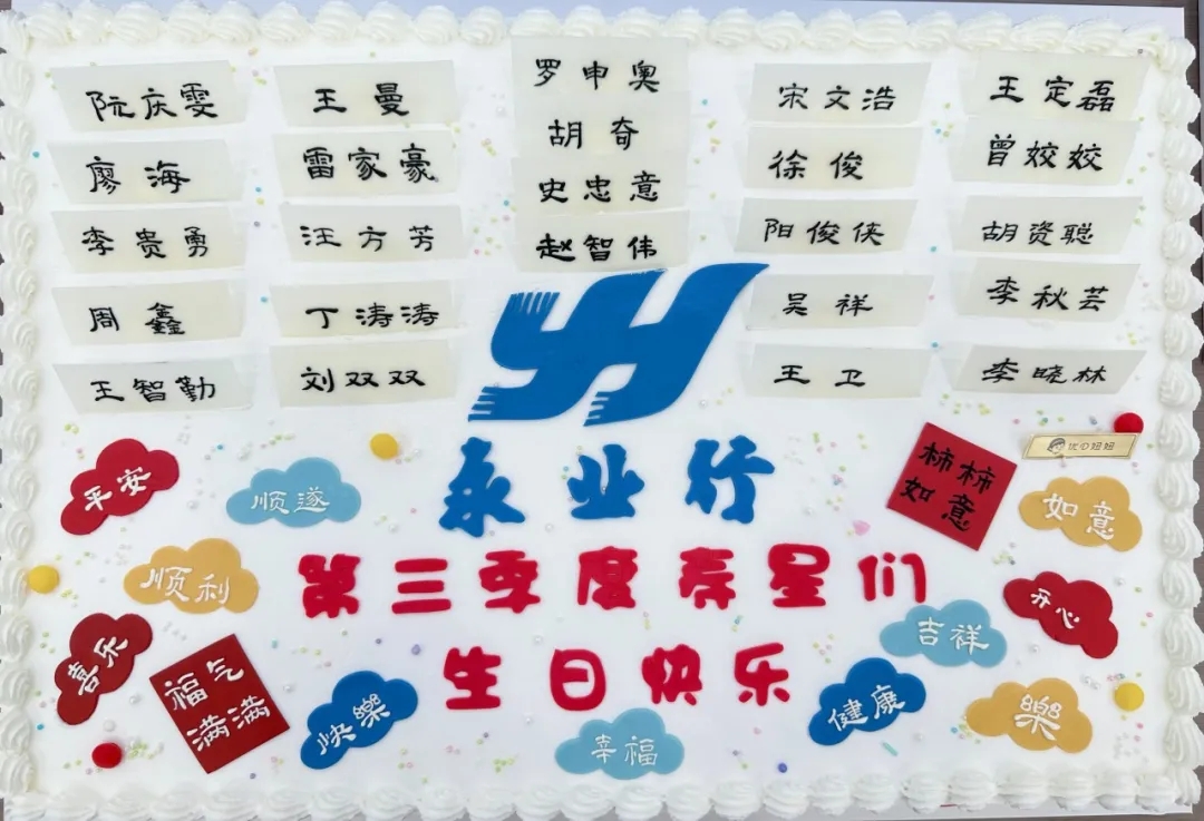 放有所有壽星姓名的生日蛋糕,公司領(lǐng)導(dǎo)、鄂西區(qū)總經(jīng)理雷小明親臨現(xiàn)場獻(xiàn)上生日祝福~滿滿的儀式感,讓小伙伴們倍感溫暖。